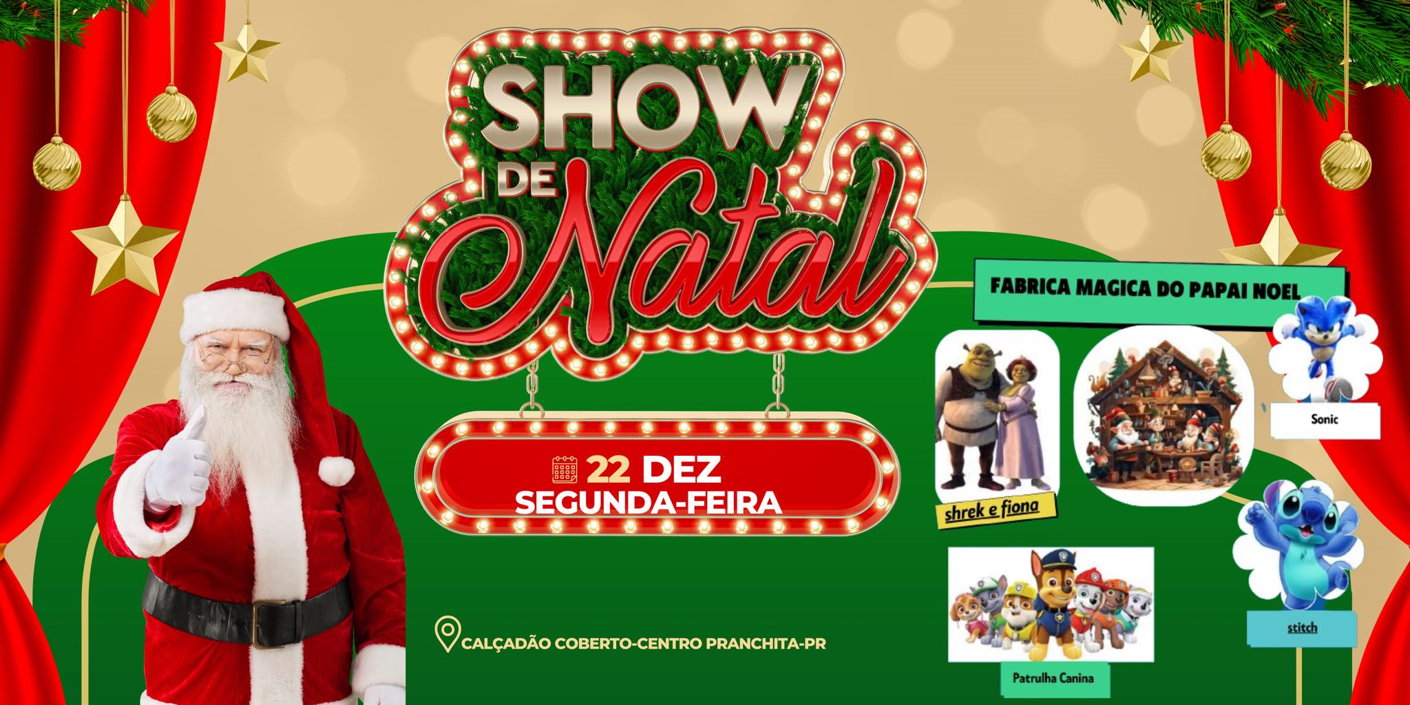 A Administração Municipal convida toda a população para prestigiar o Natal Luz de Pranchita, que contará com dois dias de programação especial, levando magia, alegria e momentos de confraternização para toda a comunidade. O evento terá a participação especial da parte E MEIS do município e da tradicional Feira dos Municípios, presente em ambos os dias.