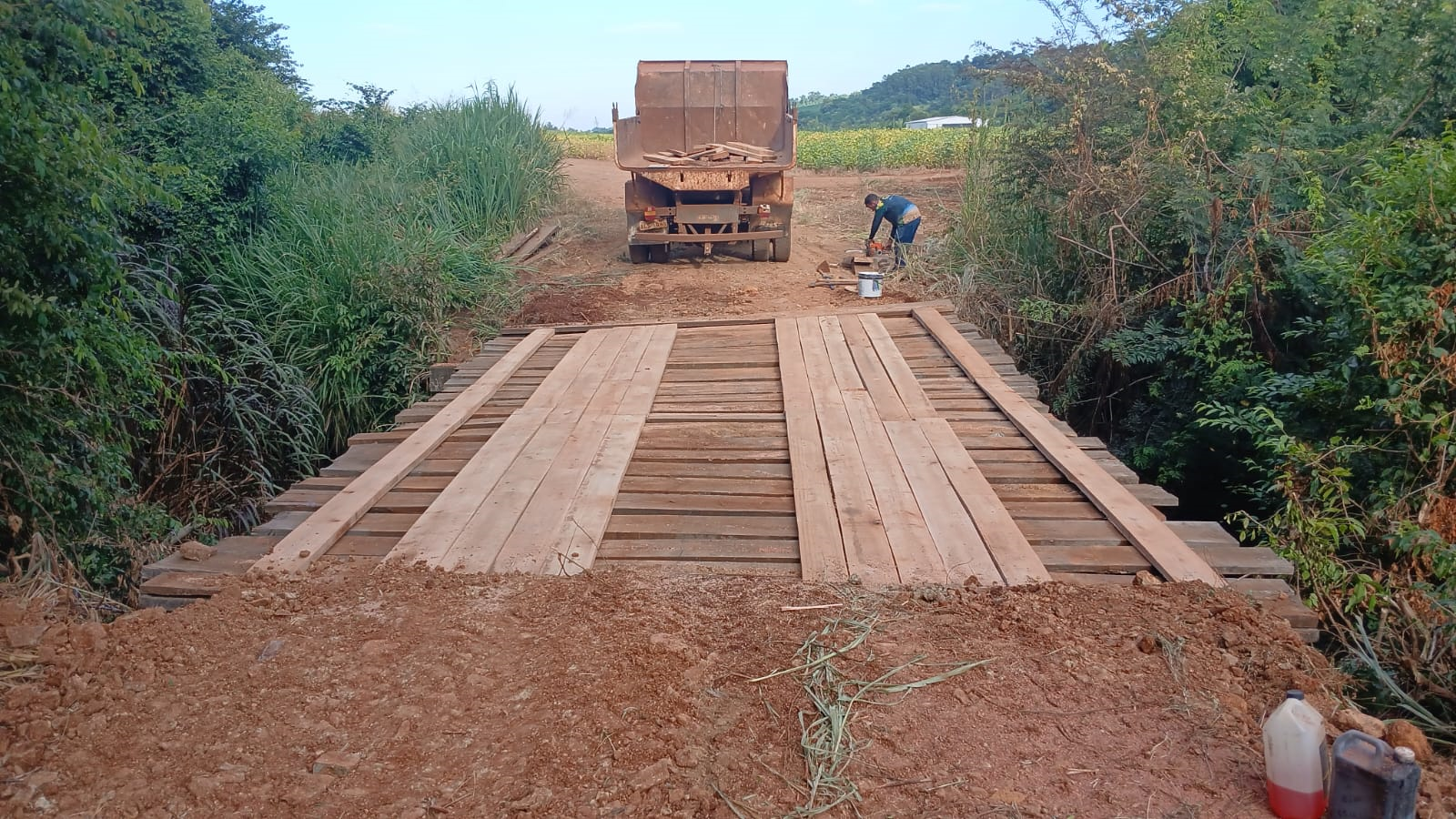 A Secretaria Municipal de Obras e Urbanismo realizou, na última semana, a construção de uma nova ponte na comunidade da Linha São João, importante ligação entre as comunidades do Km 16 e da Linha Funk.