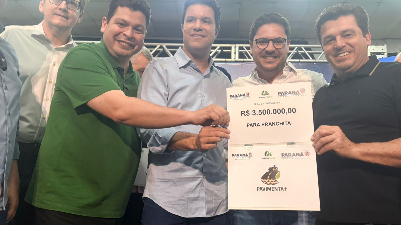 A conquista foi anunciada após um encontro com o governador Ratinho Junior, o secretário das Cidades, Guto Silva, e os deputados estaduais Gugu Bueno e Mateus Vermelho, representantes de Pranchita junto ao Governo do Estado. A reunião ocorreu na segunda-feira, 11 de novembro, em Pato Branco, reunindo prefeitos e lideranças da região Sudoeste.