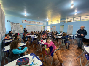 Na última semana, o Secretário Municipal de Agricultura, Jair Schmidt, em parceria com a Vigilância Sanitária, realizou uma série de palestras sobre reciclagem em escolas da rede municipal — com início na APAE e alcance às unidades da zona rural e urbana.